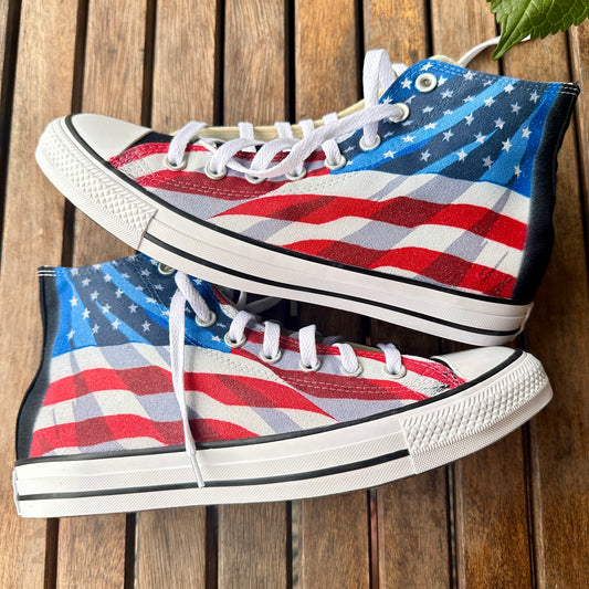 American Flag Black Converse High Top Chuck Taylor Shoes Made In USA