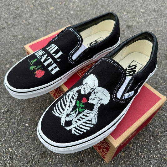 Till Death Kissing Skeletons Wedding Vans Slip On Shoes - Men's and Women's Custom Vans Sneakers