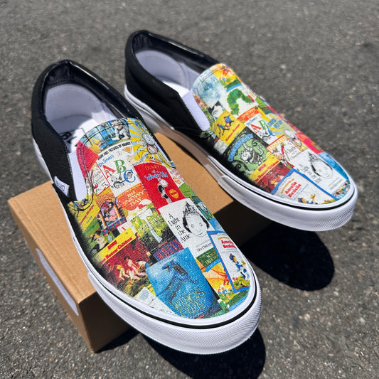 Elementary School Reading Custom Black Slip On Shoes with Favorite Books on BLVD Original Slip On Shoes for Men and Women