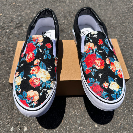 Rose Flowers Floral Pattern Custom BLVD Slip On Shoes for Men and Women