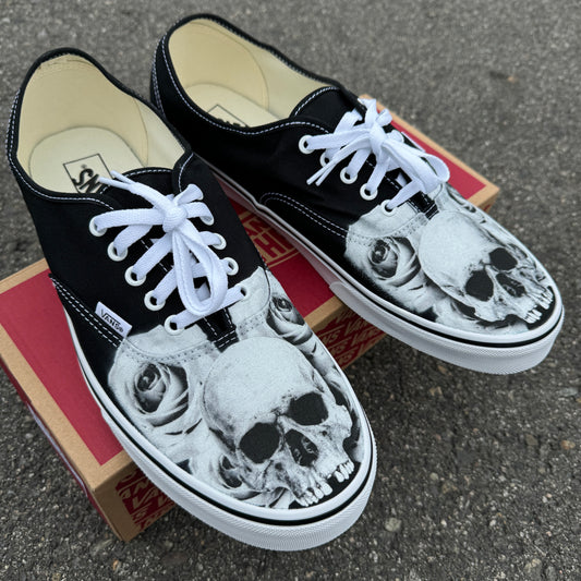Whimsical Roses on Black SK8-Hi Vans Shoes - Women's and Men's Custom Vans Sneakers
