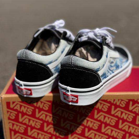 The Great Wave Off Kanagawa Custom Black Old Skool Vans - Men's and Women's Shoes