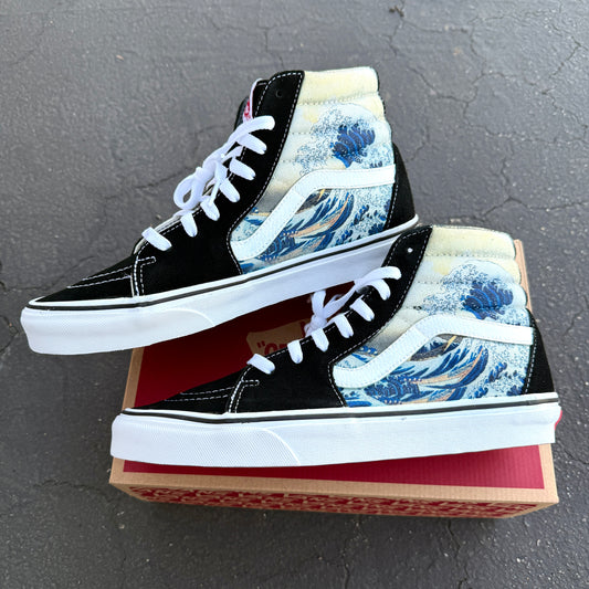 The Great Wave on Black Vans Sk8-Hi Shoes