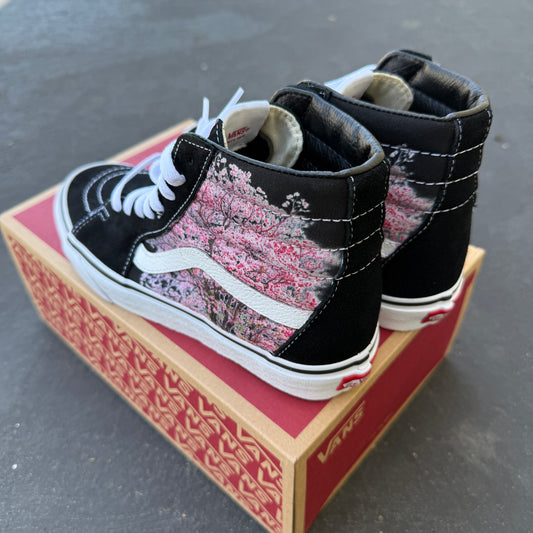 Cherry Blossoms on Custom Black Sk8-Hi Vans Shoes for Women and Men