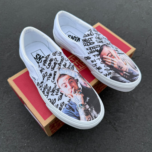 Mac Miller Custom Sneakers - White Slip On Vans Customs