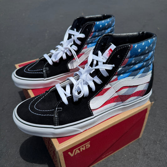 USA Flag on Black Sk8-Hi Vans Shoes for Women and Men Customized Sneakers