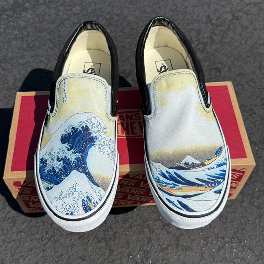The Great Wave Off Kanagawa Custom Black Vans Slip Ons