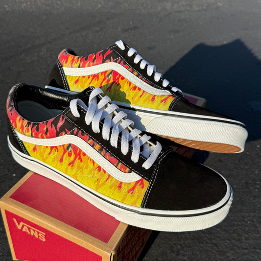 Jaguar Leopard Print on Black Vans Old Skool Shoes