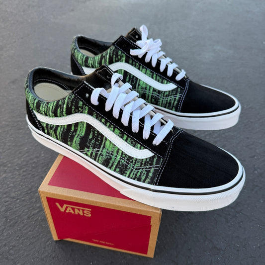 Matrix Code Digital Rain Vans Old Skool Sneakers - Men's and Women's Lace Up Shoes
