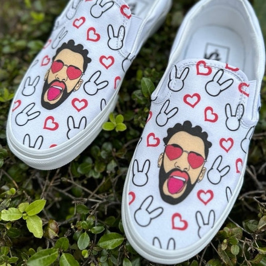 Bad Bunny Valentines Day Red Heart Portrait Custom Slip On Vans: LIMITED TIME ONLY - Custom Vans Shoes