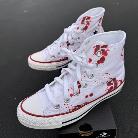 Blood Splatter White High Tops - Custom High Top Sneakers - Custom Converse Shoes