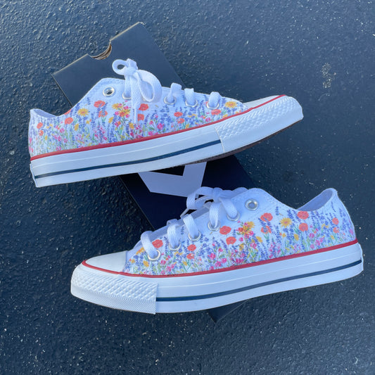 Flower Field - Custom Wedding Shoes White Converse Chuck Taylor Low Top Shoes