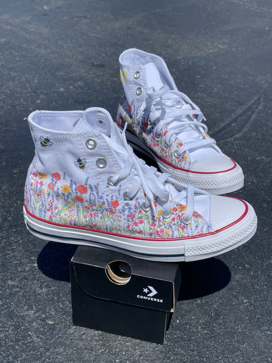 Custom Converse Shoes - Flower Field Bee - Custom High Tops