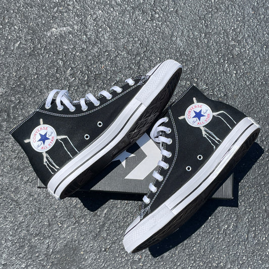 Consequential Clothing x Butterfly Effect Skull - Black High Tops - Custom Converse Shoes