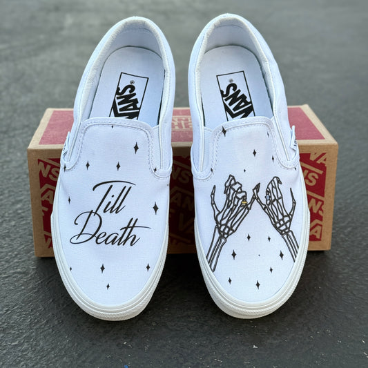 Till Death Pinky Promise Custom Wedding Vans Slip On Shoes for Women and Men
