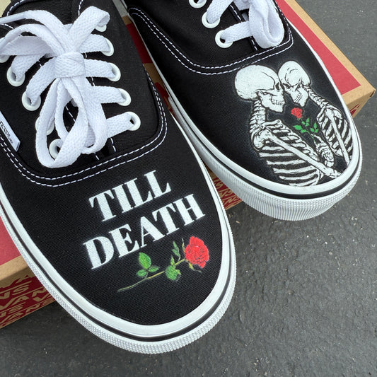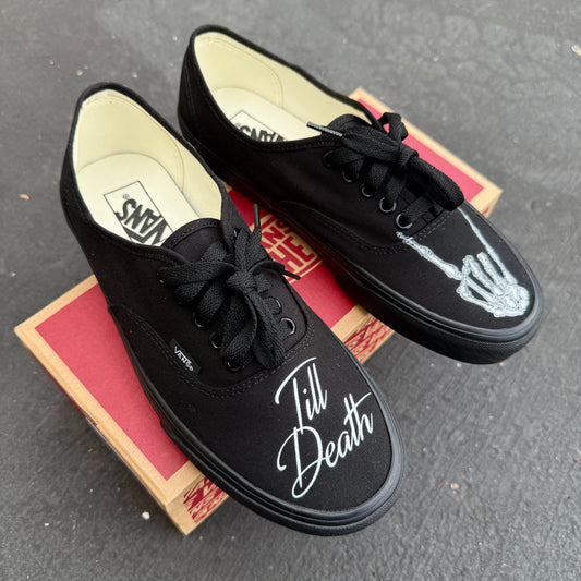 Till Death Rocker Hand Custom Wedding Vans Black/Black Authentic Shoes for Men and Women