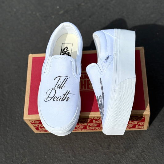 Till Death Custom Wedding Platform Vans Stackform Slip On Shoes for Women