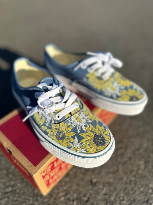 Sunflowers and Daisy Flowers on Navy Authentic Vans Shoes - Men's and Women's Custom Vans Sneakers