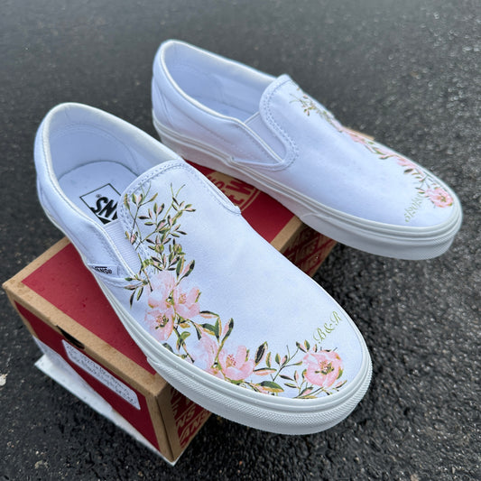 Light Pink Flower - Wedding Custom Slip On Vans Bridal Shoes Wedding Sneakers Wedding Shoes for Bride Brides Maids and Maid of Honor