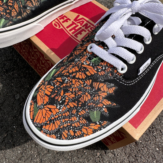 Butterfly and Skull Custom Vans Slip On Shoes - Black and White