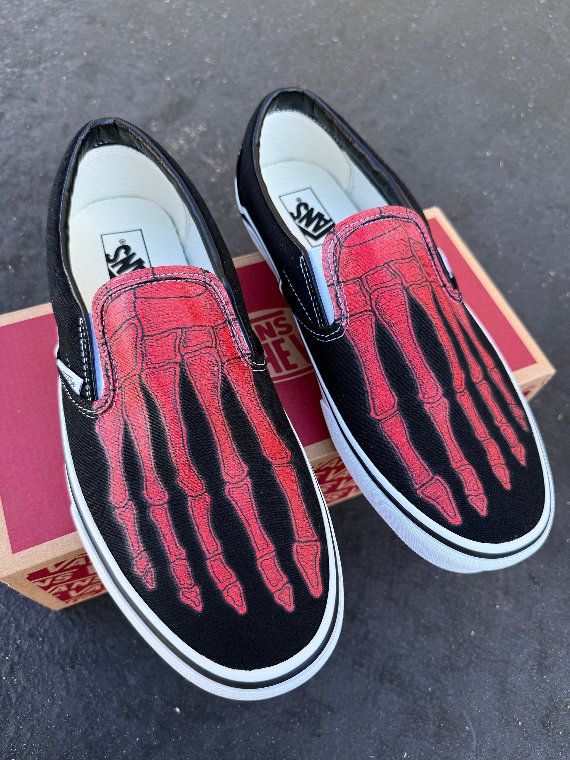 Custom Skeleton Feet Red X-Ray Slip Ons - Custom Vans Shoes